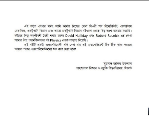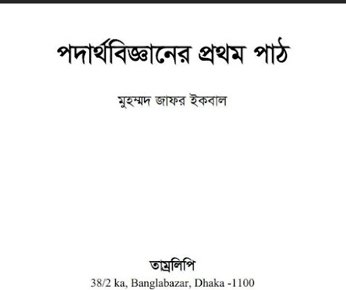 This is Bengali Physics Book written by Muhammad Jafar Iqbal.Muhammed Zafar Iqbal (Bengaliborn 23 December 1952) is a Bangladeshi author of science fiction and children's literature. He is a professor of Computer Science and Engineering and also head of the department of Electrical and Electronics Engineering at Shahjalal University of Science and Technology.You guys should need a PDFs viewer in your device to read this book comfortably.