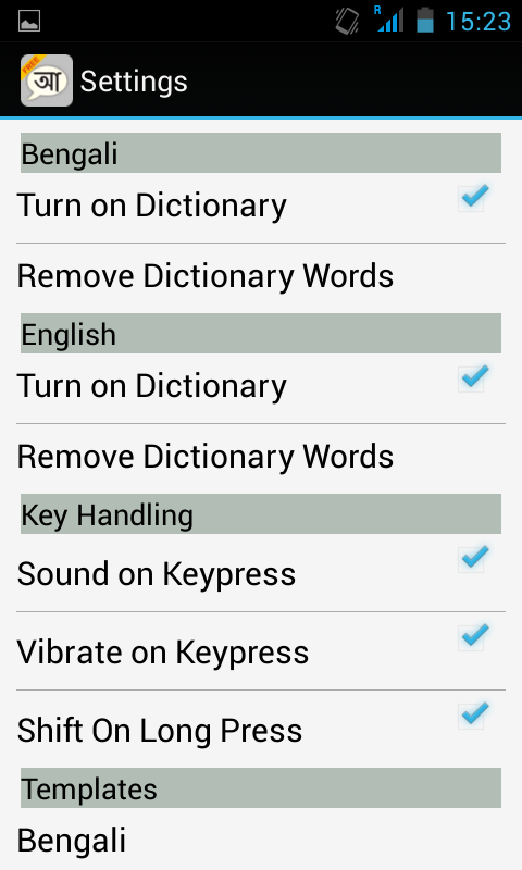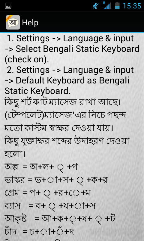 Using this Bangla static keypad, you can write in both Bangla/Bengali(বাংলা) and English with intelligent and accurate dictionary predictions on both Android phones and tablets. Numbers, symbols, smileys, attractive extras are also supported.
