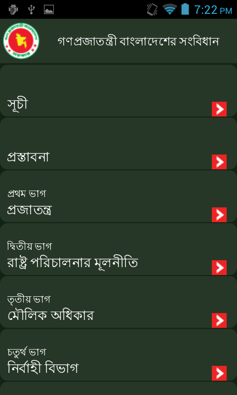 Bangladesh Constitution app in Bangla, provides an easily searchable and readable format which contains all essential concepts for the citizens. It enriches lack of knowledge of the nation's laws on the part of the citizenry. The app ensures all Bangladeshi’s to have a working knowledge of the constitution by providing an easily accessible version of the document for mobile phones.