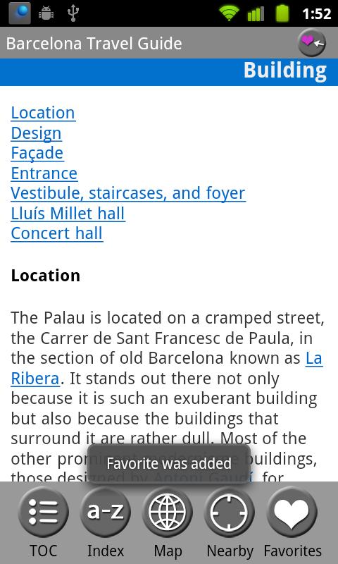 This fully-functional guide is absolutely free. The full version (only $4.99) adds Text-To-Speech and expands articles with more information about attractions, history, culture, itineraries, phrasebooks and more. Listen to complete articles on the go with Text-To-Speech: double-tap on a word to start Text-To-Speech from the selected word or select Menu > Start Text-To-Speech.