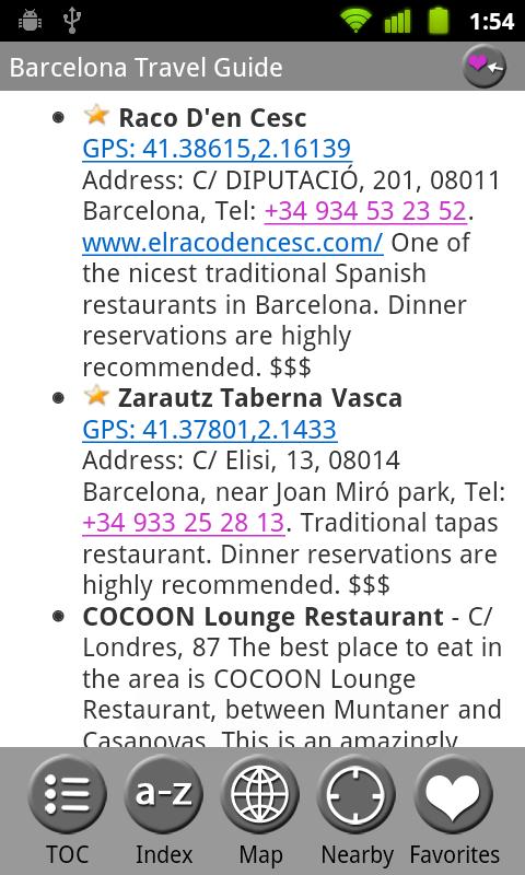 ✔ The top restaurants have been individually selected by MobileReference editors. These restaurants are marked by a star in the EAT chapter and are plotted on the GPS map.