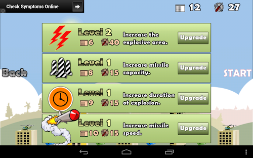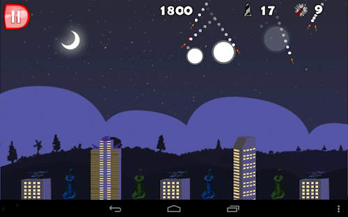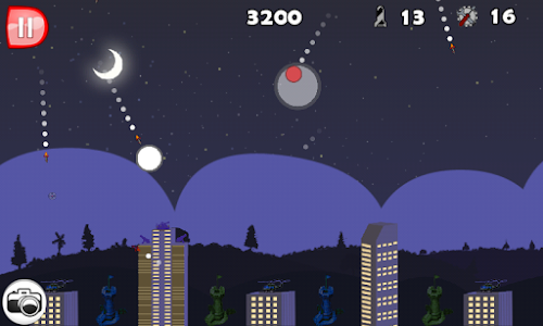 The goal of Base Defense is simple, the players city is being attacked by a hail of ballistic missiles. As the commander of regional surface to air missile battery the player must defend as many buildings as possible from enemy missiles. Enemy missiles include MIRVs and even smart bombs that are difficult to shoot down.The player has a limited number of missiles in his missile batteries. A battery becomes useless when it runs of ammunition or is destroyed by an enemy missile. The game inevitably ends when all buildings in the city are destroyed.
