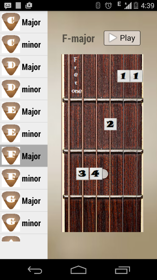 Unlike most of the other chords learning apps, "Basic Guitar Chords" does not only tell you how to play, but it plays the chord for you to check if it sounds correct.