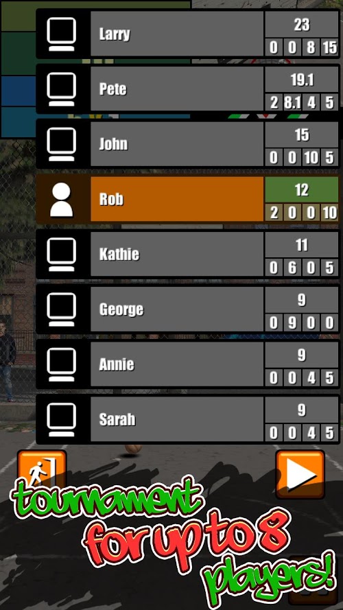 - Tournament basketball mode with 4 preset tournaments you can play with up to 8 human or computer players to figure out who's the best