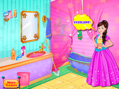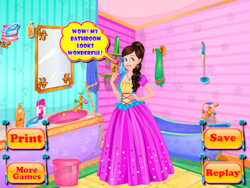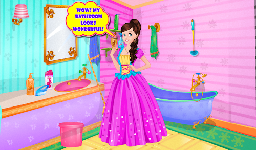 Hi, do you like stories? Of course you like stories because in all the stories that you have read you meet some characters that you liked a lot, for example princesses are those that make a great story. In every story there is a very beautiful princess who is helping the all people. How many times have you wanted to be like a princess? Probably for many times you have played in house and you claimed that you're a princess. Sure you know that the princesses live in palaces or castles you know that they have many people that are working for them. In this girls game with princesses you can help our friend Jade. She is home alone and she should be clean in the bathroom to be able to go to a party. Do you want to help her? Do you want to become a friend of this princess? If you want to help her then you will like this game for girls.