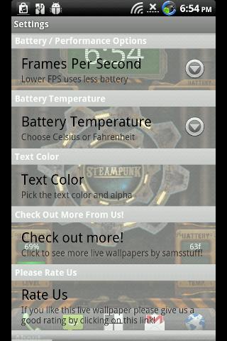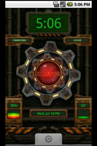 Steampunk Cogs Live Wallpaper: This is a live wallpaper that has a digital clock and battery stats.