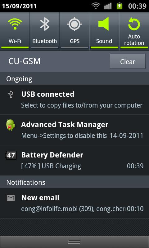 2. Shows battery percent in the notification bar.