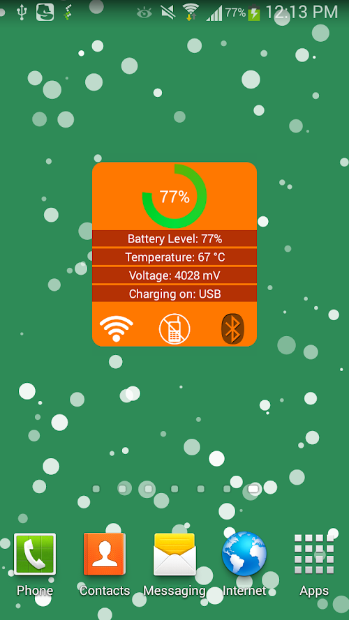 Battery Status Widget is an elegant widget which shows you the battery level on your home screen. Tapping on it will show more battery information with a shortcut to view battery use. Now Battery Status Widget can help you save battery by letting you control device settings such as WiFi, Bluetooth, silent and more.