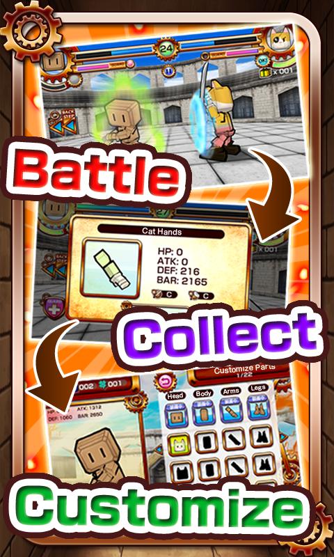 Defeat enemies and collect the parts they drop to customize your Battle Robot, as you face stronger opposition!