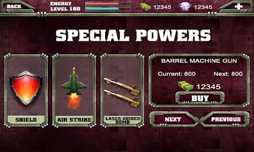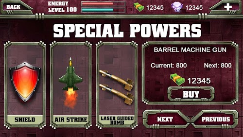 Special Super Powers: air strikes, mine bombs, invulnerability shield.
