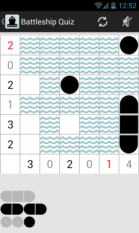 Your goal is to place a fleet of battleships in the sea so that ships don't touch each other.