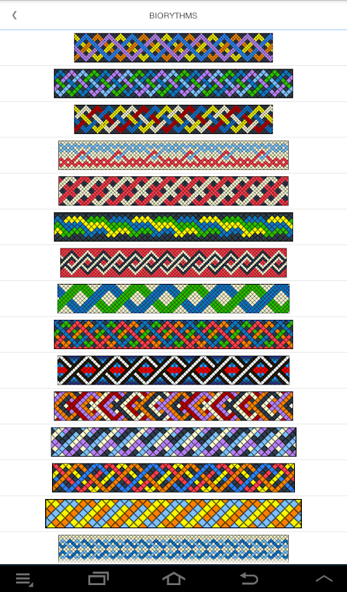 The version is already quite popular application: Friendship bracelet online, which does not require an internet connection to display schemes. The application contains a scheme for weaving baubles. Will be a great friend to both experienced enthusiasts crafts and beginners, thanks to the lessons of weaving.