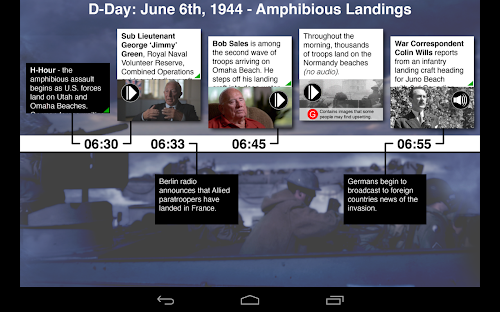 Veterans of D-Day give their own account of one of the single greatest military operations the world has ever seen. Their testimonies are featured in an interactive timeline, which also includes radio and film footage recorded on D-Day itself. Contains: