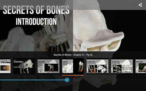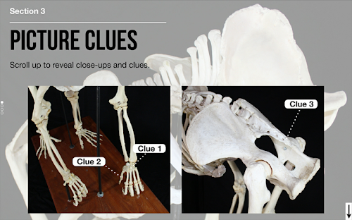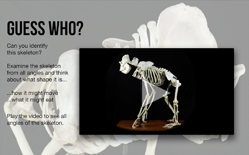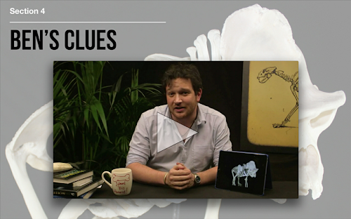 Each chapter contains a new skeleton and a series of clues to help piece together what animal the skeleton is from. Videos from Ben and interactive pictures help build up more information about each skeleton before revealing the answer.