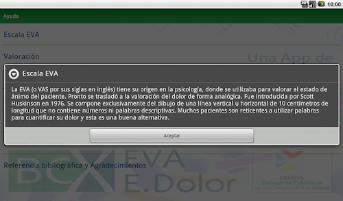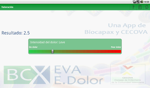 IMPORTANTE: BCX EVA Escala del Dolor es una aplicación pensada para su utilización por personal sanitario, cuidadores y familia. Cualquier mal uso o uso inadecuado de ella no es responsabilidad de los creadores. El profesional siempre deberá verificar la corrección de la valoración generada por la aplicación que es meramente orientativa y basada en el índice original.