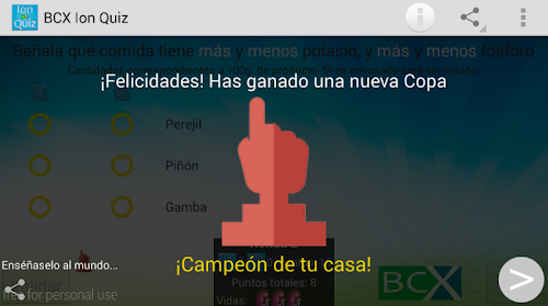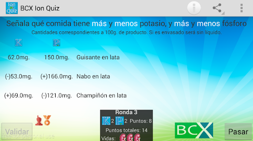 o visita http://www.biocapax.comBCX Ion Quiz is an application designed for the sick kidney patients, to learn to be able to distinguish which foods contain more or less phosphorus.