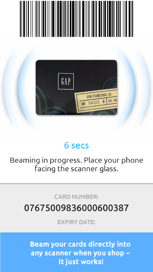 The Beaming Service enables your device to beam (relay) barcodes, as found on digital coupons, event tickets, library cards, loyalty cards and membership cards to 1D red laser and Image based scanners prevalent at nearly every retail store and checkout stand around the world. Use supported apps like Beep'nGo to upload your plastic loyalty, membership and gift cards directly to your supported Samsung device. These digital barcodes can then be shared from your device screen directly to handheld or flatbed scanners (checkout stands) found at your favorite stores.