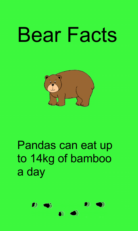 How much can a panda eat? How many different species of bear are there? When do brown bears mate? These are the question that can be answered with this app.