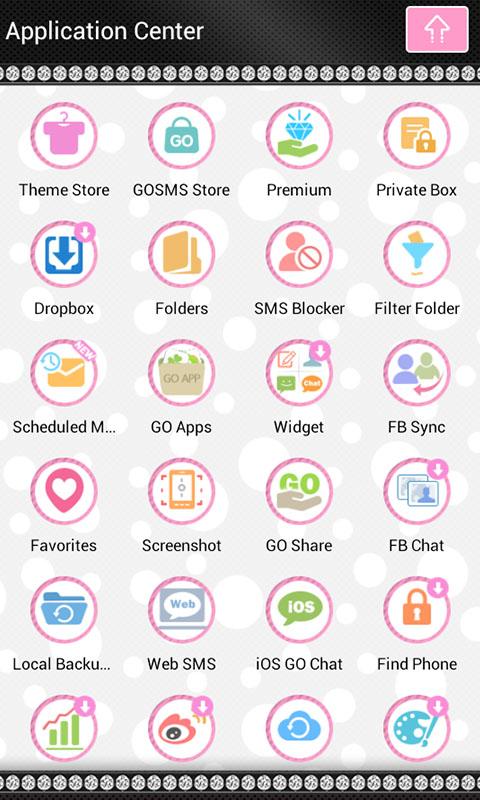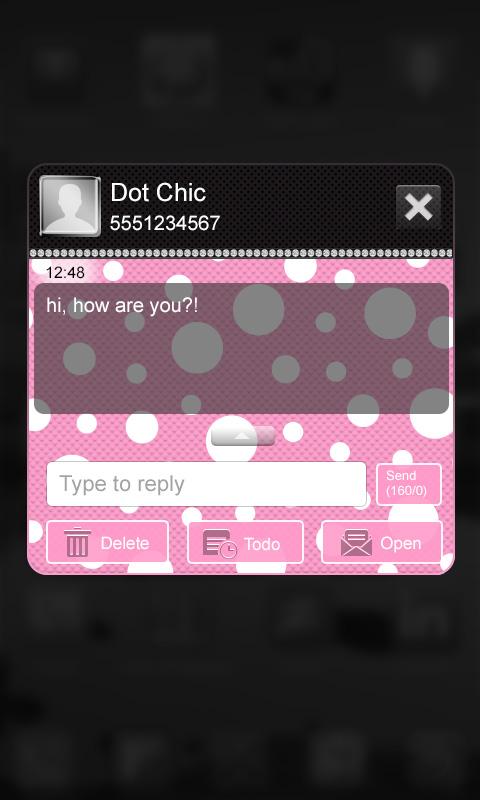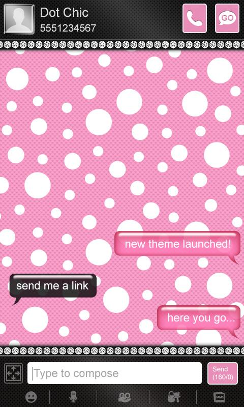 Tap App Icon > Tap Set Theme > Tap LOCAL > Apply > Beautiful Pink Polka Dot Theme GO SMS