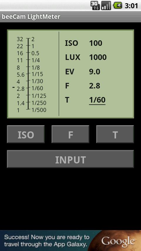 This app can also calculate f-stop or shutter speed by using manually inputted illuminance or EV.