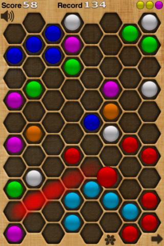 BeeCells is a highly enjoyable game. Once you start, you won’t want to stop. Try it, and see how high you can score. The goal is to group six or more balls of the same color together. Once the balls are grouped, your score increases, and the grouped balls disappear to make room for more maneuvers. After each turn, your phone puts more balls on the board and your task becomes more difficult. The game is over when the board completely fills up. BeeCells has colorblind mode with fruits and flowers instead of balls. There are also different color skins. Enjoy the game!