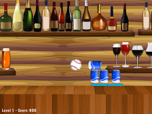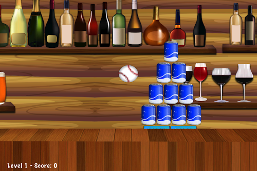 The ultimate beer can game. Throwing baseballs at stacks of beer cans on the bar. I bet you don't get to do that in your local. How good are you? You only have 3 balls per level so you better be accurate.