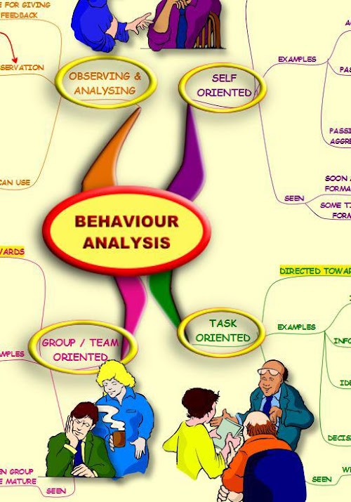 This is a Mind Map that you can use as a basis for observing and analysing the behaviours of the people around you. It can be used for analysing the behaviours of teams at work, or any other group that spends a lot of time together. It can be used as an effective tool for feedback purposes, or just for your own appreciation of 'what's going on' in your own group or team.