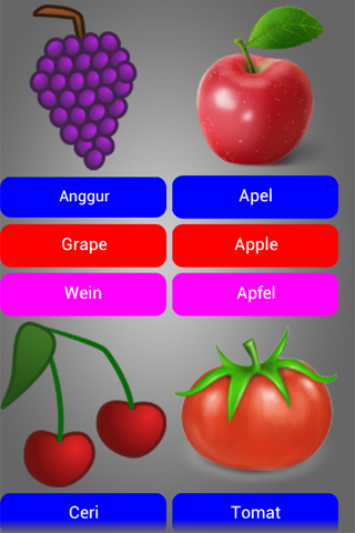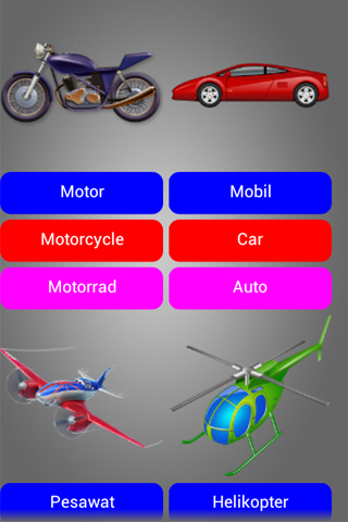 Belajar 3 bahasa adalah aplikasi yang memudahkan anda dalam belajar mengenal nama nama hewan,warna,angka,buah-buahan, dan alat transportasi. Juga aplikasi ini mengajarkan anda cara membaca bahasa asing yang baik dan benar3 Learning a language is an application that allows you to learn to know the names of animals, colors, numbers, fruits, and transportation. This application also teach you how to read a foreign language is good and true