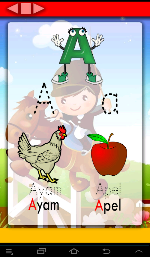 Belajar membaca dan Menulis Huruf Abjad, disertai degnan Gambar dan Animasi Huruf yang akan memudahkan anak untuk menghapal dan memahami cara membaca dan menulis. Learning to read and Letter Writing Alphabet, accompanied Degnan Animation Picture and letters that will allow children to memorize and understand how to read and write.