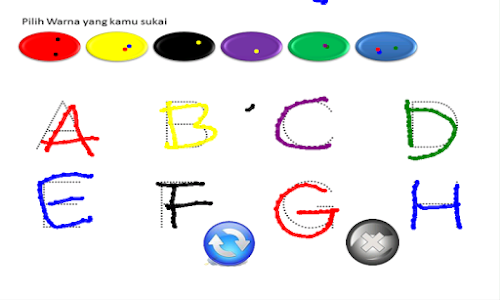 Modul lain yang ada dalam aplikasi ini adalah soal latihan (kuis) untuk mengasah daya ingat anak dan latihan menulis huruf dengan variasi warna yang menyenangkan