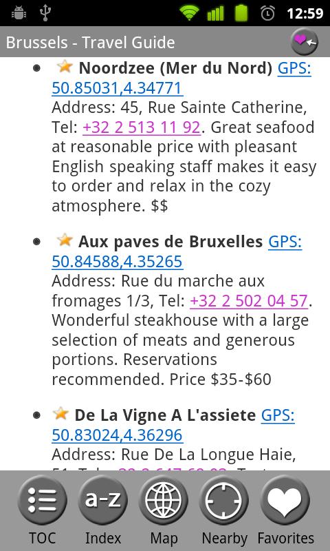 ✔ The top restaurants have been individually selected by MobileReference editors. These restaurants are marked by a star in the EAT chapter and are plotted on the GPS map.