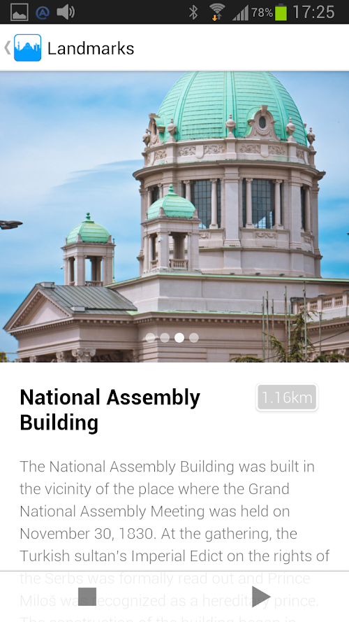 When you're ready to hit the sights, simply open the app, aim your phone and turn on the „Augmented Reality“ setting to find the nearest landmarks. You'll be able to open up an array of short stories about historical and cultural establishments that have helped shape the city into one of the most beautiful metropolises in Eastern Europe. An audio guide will read the descriptions of each location, so you can keep your eyes on the beautiful arhitecture, and off your screen.
