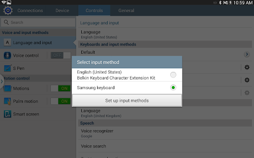 Note: When Samsung tablets power down they revert to their native keyboard. If this happens, you will have to manually change your keyboard again.