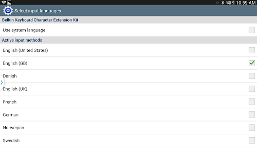 • Under Default sub screen keyboards check the Belkin Character Extension (check mark)