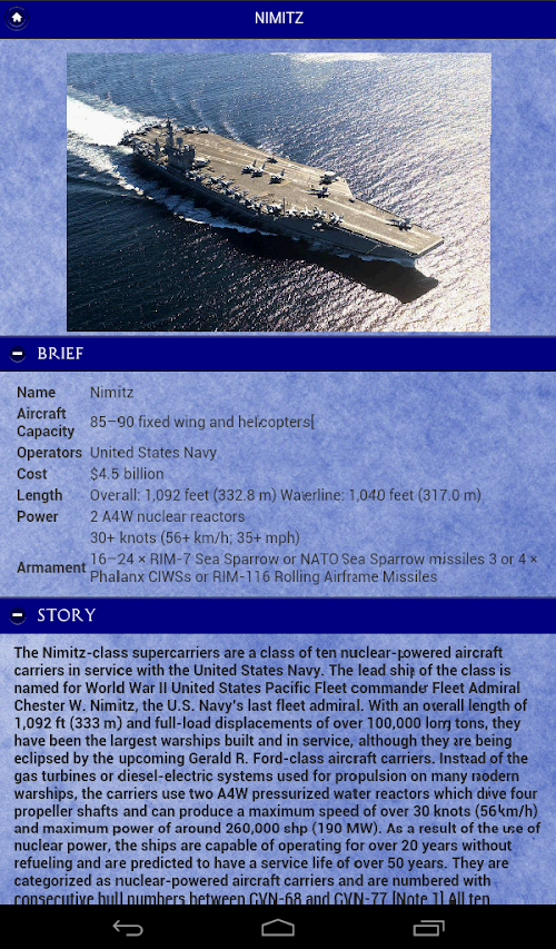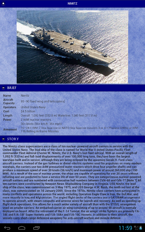 This version of Best Aircraft Carriers FREE Android App comes with one universal variant which will work on all the Android devices.