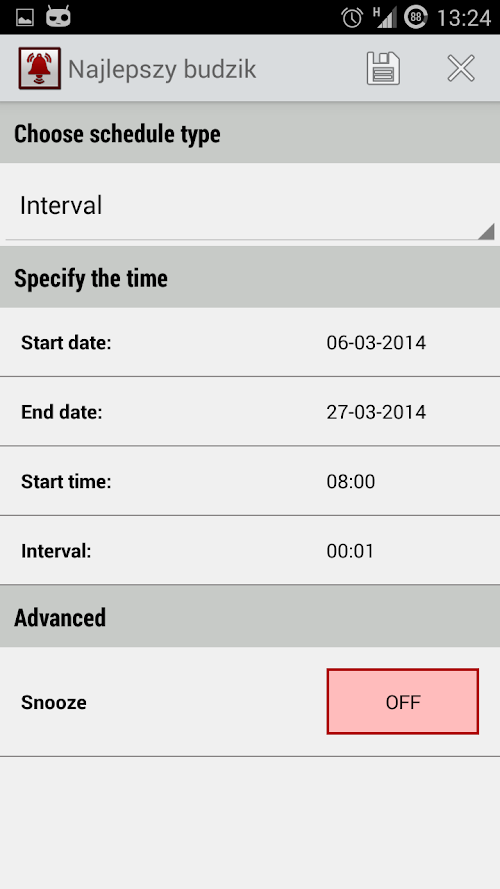 With Best Alarm Clock you can fast set the alarm with all options which you need. Best Alarm Clock allows to prepare complex alarm with specified hours, days of week, months, intervals, breaks and a lot of more specific options.