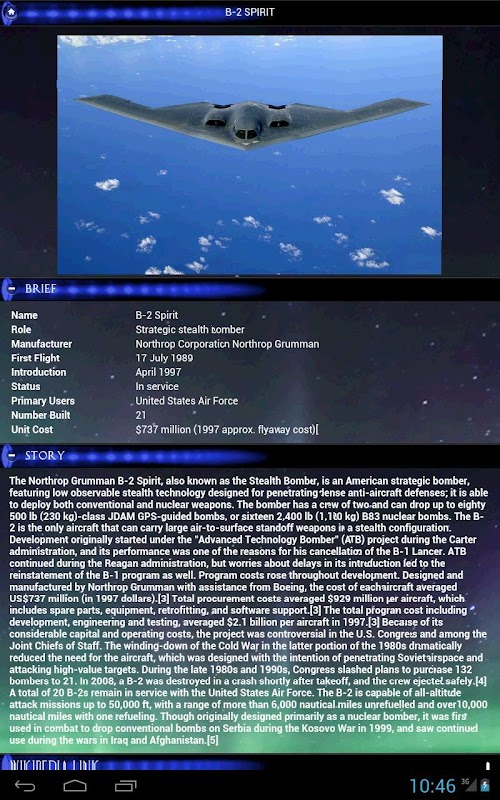 This version of Best Bombardment Aircraft FREE Android App comes with one universal variant which will work on all the Android devices.