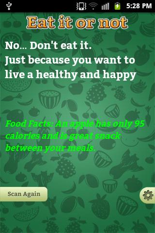 If you answered yes to any of these questions, you are looking at the right app to help you. This app aims to stop you from eating junk food and encourage you to always eat healthy food. Download this app and use this app every time you want to decide whether to eat it or not. App always gives you affirmation message why you shouldn't eat that food and encourages you to choose healthy choices.