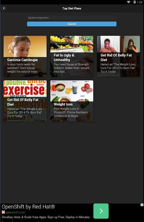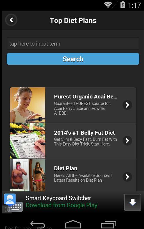 NOTE: Our app scans through thousands weight loss resources to find the most suitable offers for you, so it may take a few seconds before results show up. If you don't like the results we picked up for you, feel free to use the build in search engine and make more specific searches.
