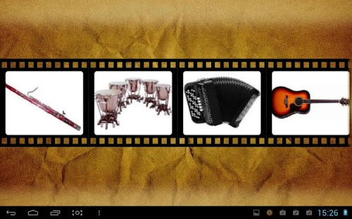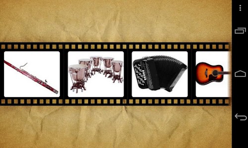 In our app you can find sounds of: saxophone, violin, piano, acoustic guitar, clarinet, bongos, accordion, harp, flute, bassoon, timpani, marimba.