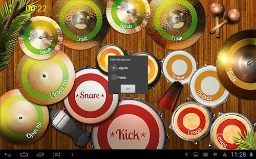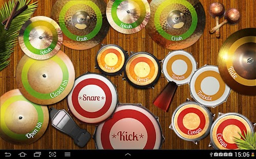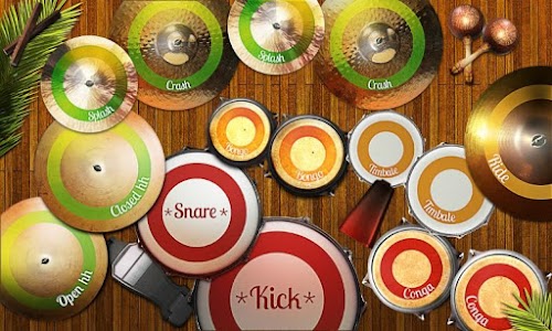 ♫ Choice of instruments sound: kick, crash, snare, cowbell, ride, conga, splash and more