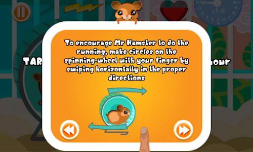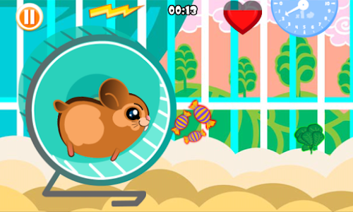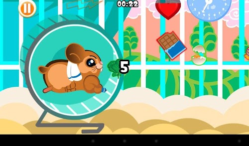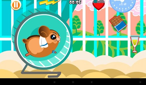 Spin around as fastest as possible by doing circles on the spinning-wheel with your finger. You also need to feed Mr. Hamster (he is very hungry!) by allowing him to eat healthy food – which is marked with green areola. Be careful and choose the menu wisely! Our fitness hero will gain weight, if he eats too much junk food – which is surrounded by red color.