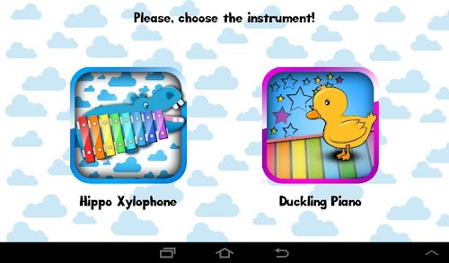 Your child can choose two types of instrument: xylophone and piano. There is also a possibility to choose between many sounds, like dog, cat, agogo, woodblock, bells and more.