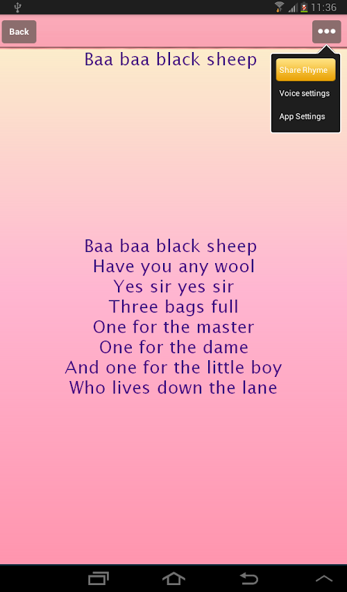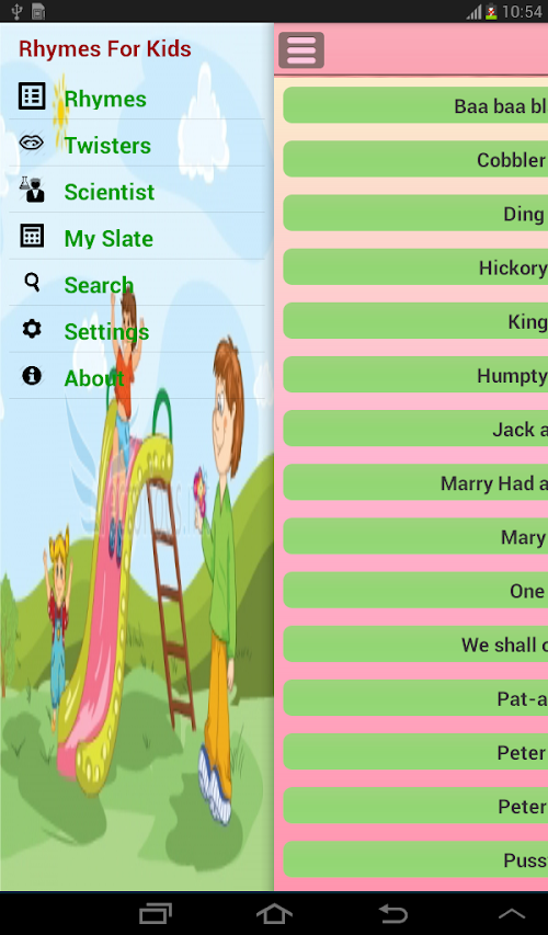 The interface is very simple keeping in mind that the app would be used by Kids. now it's having 504 Rhymes , this is only app which contains 504 Rhymes including Voice and Twisters and Number .