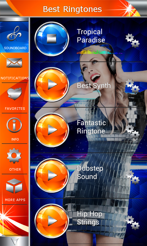 App is designed to be good for all ages, and the ringtones are chosen to satisfy everyone's taste, for kids, teenagers or older people. If you are bored with the standard ringtones for your phone, use dj, techno, hip hop, disco or reggae ringtones given in the app to make your device more funny and interesting. For those with more gentle taste there are love and romantic sounds, as well as classical music ringtones. In this best app there are and lullaby ringtones on piano, whistle sounds, bag pipes. Feel like everyday is holiday and set Merry Christmas sound as contact ringtone, or some instrumentals, like fairytale piano or xylophone. Oriental and bongo sounds and turkish music ringtone are also ih this best app. Your cell or tablet will love you forever if you download best ringtones app right now.