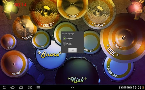- choice of instruments sound like: kick,hi hat, bass drum, snare drum, splash, crash, ride, china