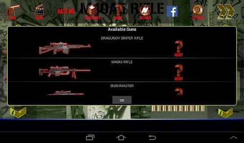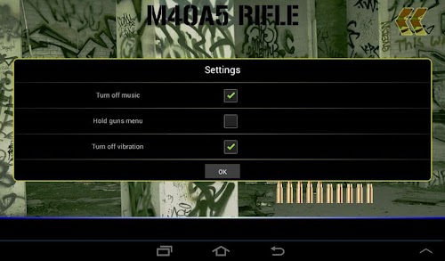 Tap and hold on the screen to play the sound of the shot. To reload - just shake the phone or swype. To change the gun/firearm, read about your favorite – click the arrows.