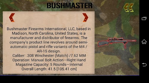 Welcome to the world of the „Best Sniper Gun”. This application allows you to shoot with guns, weapons and firearms. Read about your favorite guns and weapons. In Best Sniper Gun you will find a lot of sounds of shots from various types of firearms like: