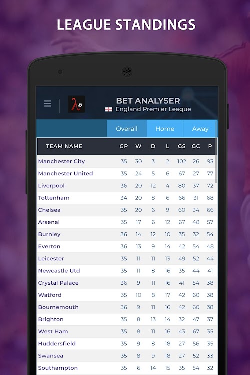 Also this is not just a prediction application. You can track league standings, football match results and team performances and stats.