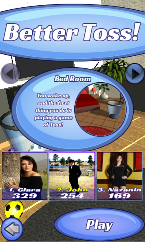 Better Toss gives you the most realistic 3D Toss experience you ever had on Android. Have full control over the ball, the faster you swipe, the faster the throw. If you are tired of Paper Toss games where you only can adjust left and right, then go on a journey that starts in your bedroom and ends in a dream world. 5 diversified basket toss 3D levels are waiting for you, each one harder than the ones before. Tossing a ball into a basket is easy, but can you handle multiple baskets, moving 3D baskets or wind? Find out, become the best player in your social circle! You see your friends pictures and highscores for the ultimate challenge. You are the new 3D basket toss champion!